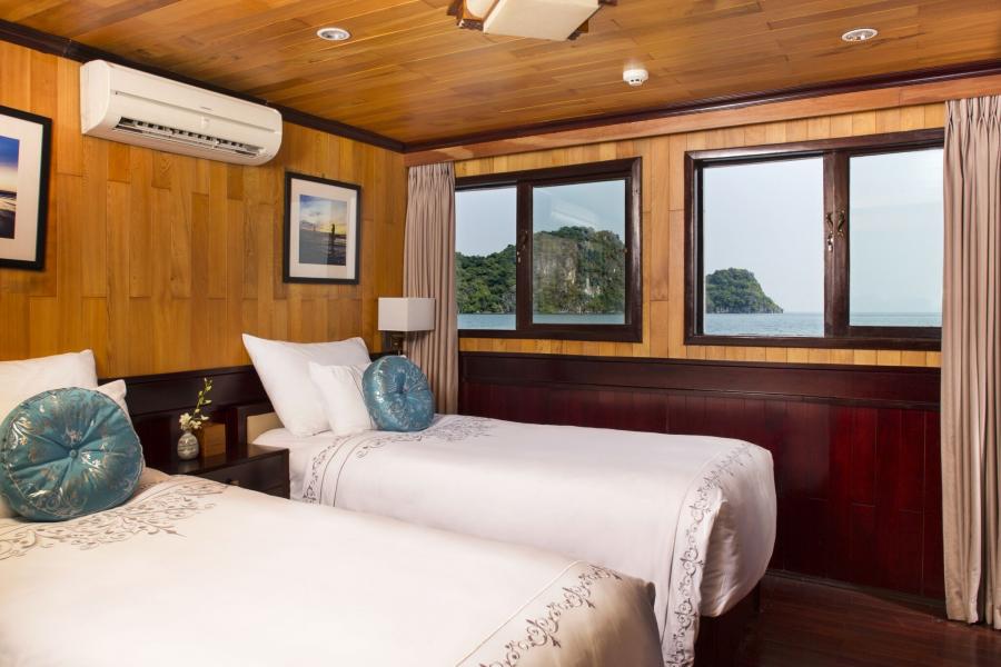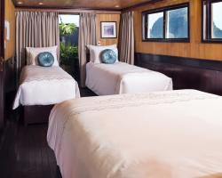Our vessel features 17 cabins, including Luxury, Luxury Balcony, Family Suite, and Terrace Suite options. Rooms include amenities such as 100% cotton sheets, individual AC, 32-inch television, minibar, mineral water, reading lamp, hair dryer, bathrobe, slippers, luggage rack and safety equipment.