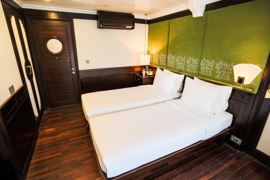 The fleet is composed of 02 luxurious twin ships, boasting 32 spacious private cabins each and belongs to the biggest cruises available in Halong Bay at the present. Boarding a maximum of 80 passengers per ship, The Au Co provides the most unique yet comfortable cruising experience with a strong touch of Vietnamese culture exploration.