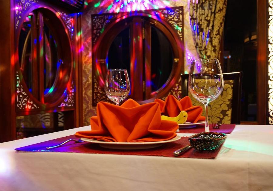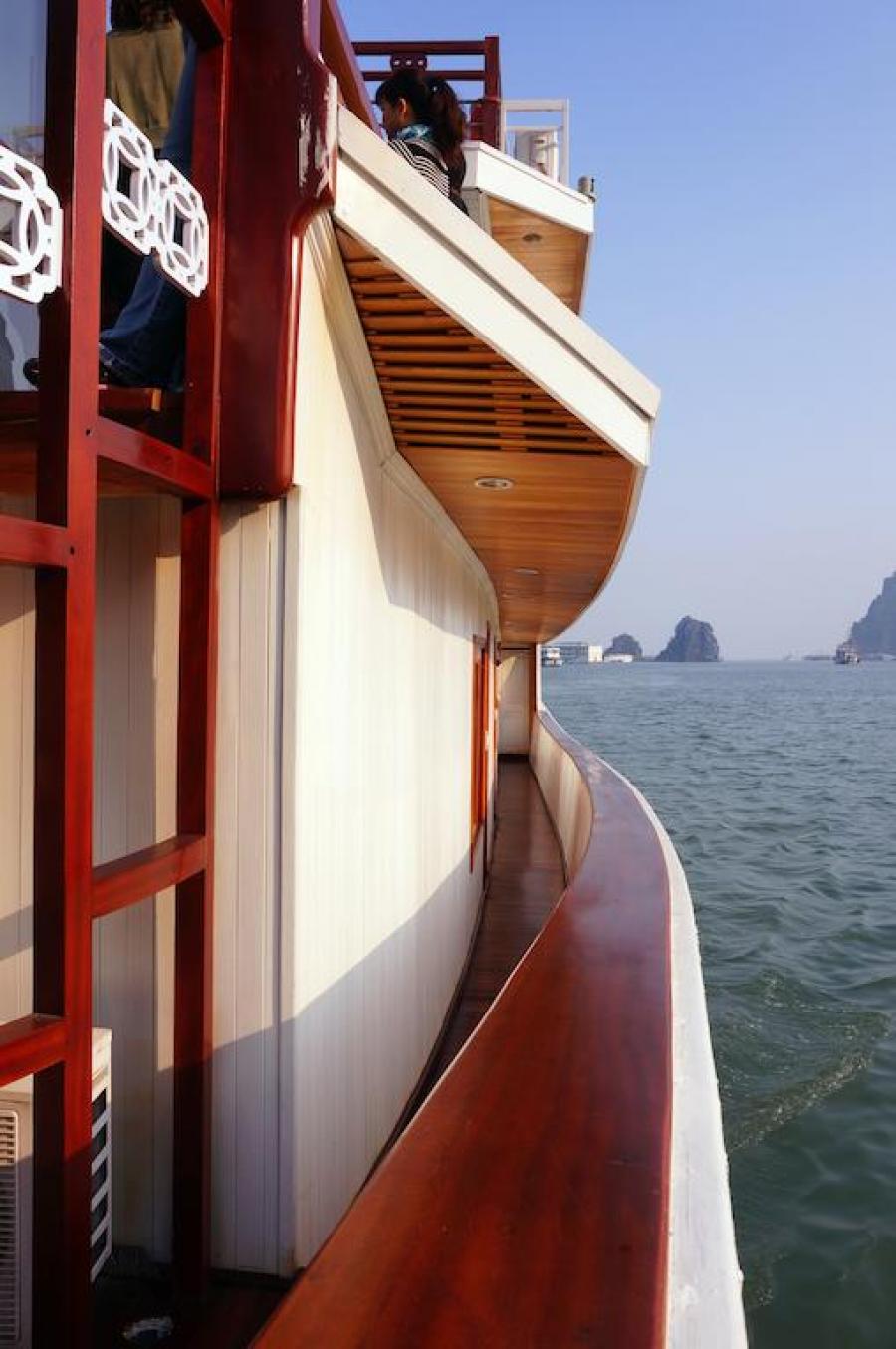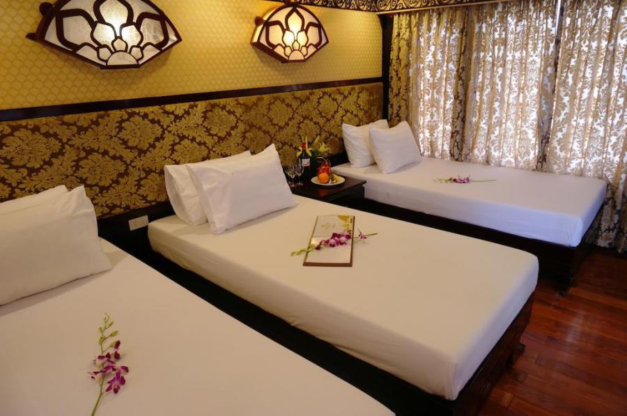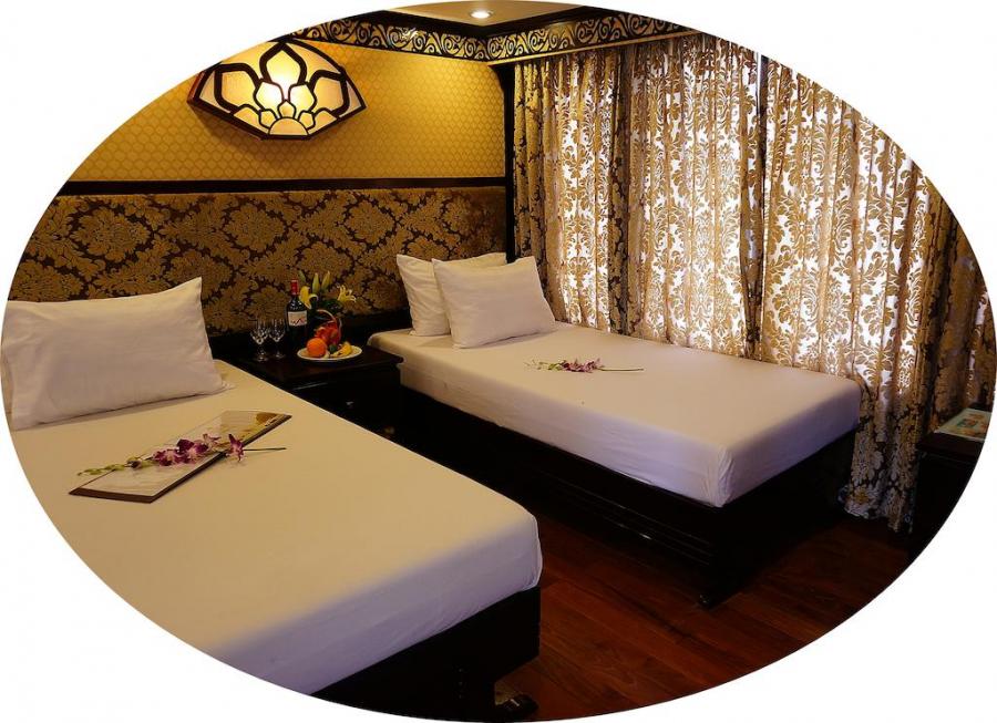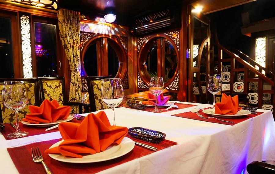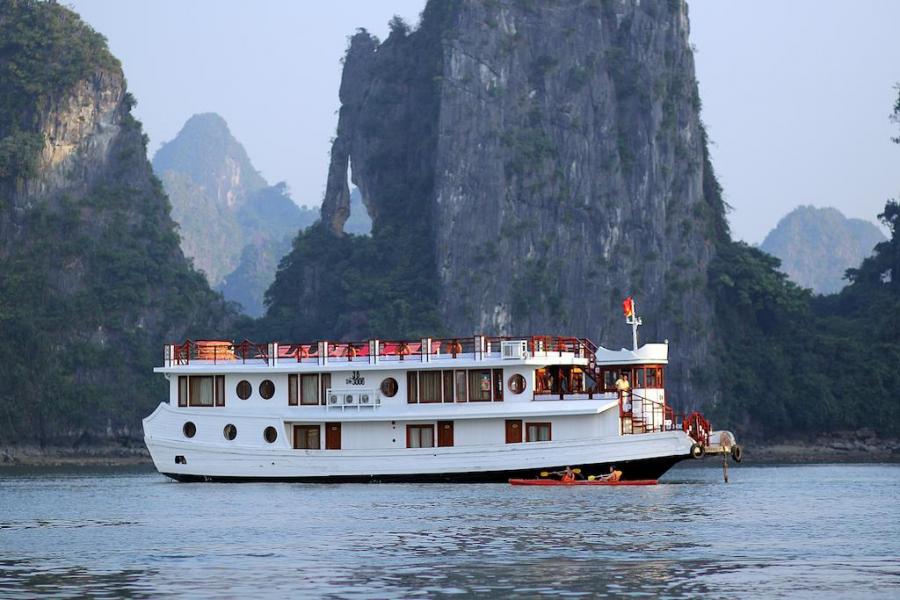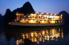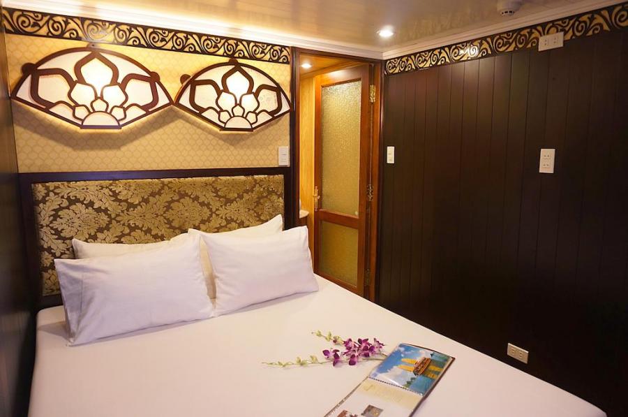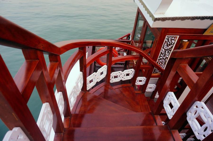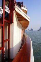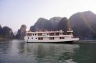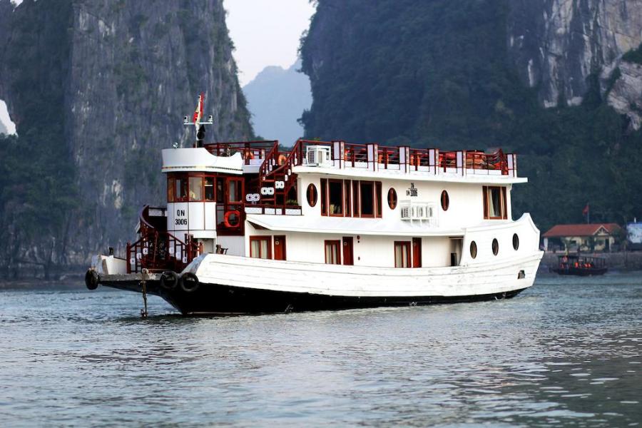 Built in 2009 and newly renovated in 2014 in ancient Vietnamese style, Oriental Sails features 18 deluxe cabins of traditional style combined with modern facilities and comfort. The junk boasts rattan & wooden furnishings, a multitude of windows for amazing views from the inside, and a panoramic sundeck allowing different activities with the beauty of Halong Bay as a backdrop.