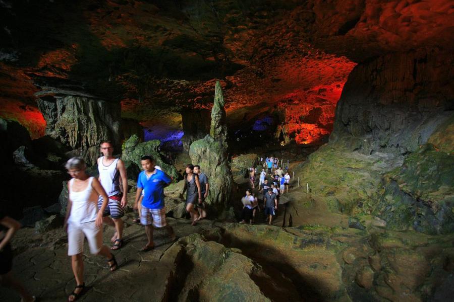 14.30: Transfer by tender from boat to Surprising Cave (Sung Sot Cave). Walk up about 100 steps to the cave entrance and tour the cave for approximately 45 minutes.