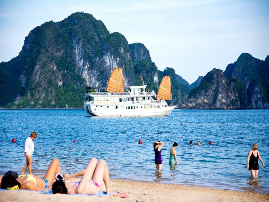 14.00: Swimming or sunbathing on the small ambiance beaches in Ba Trai Dao area.