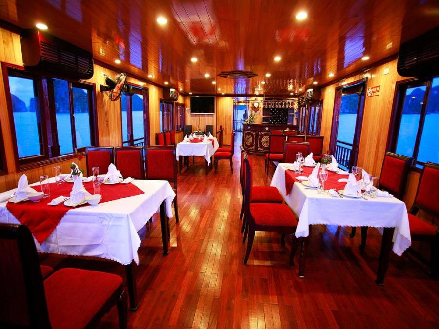 Outfitted in a traditional wooden style of elegant Asian inspired decor, Ha Long Seasun cruise spreads over 3 decks measuring 38 meter length, 8.5 meter width and 12 meter height.