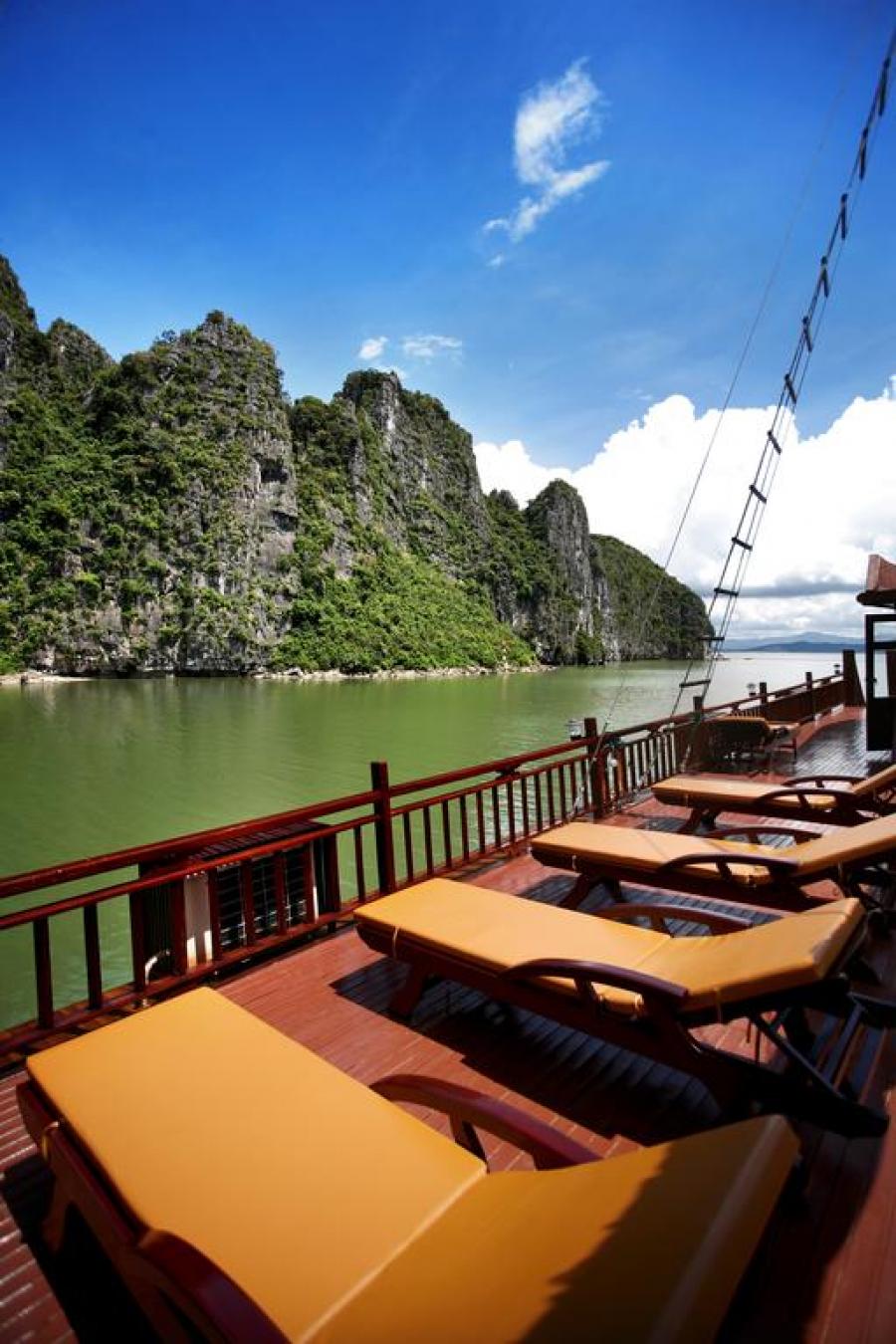 The combination between the classic beauty and modern comfort with 11 en-suite fully equipped and spacious cabins, bar, elegant dinning area, large sundecks and a professional team of crew, dedicated to every detail of personal services will make your trip with Ha Long Seasun cruise a truly unique and unforgettable experience.