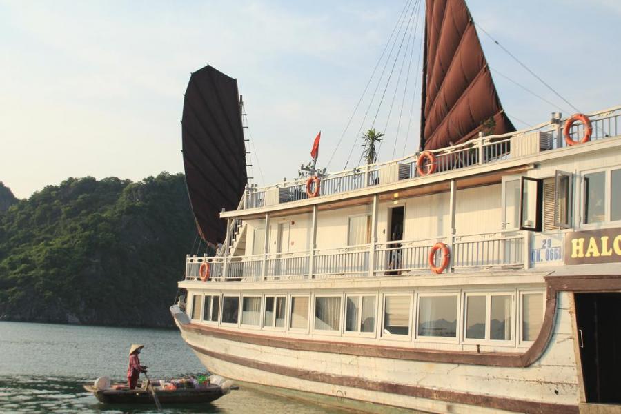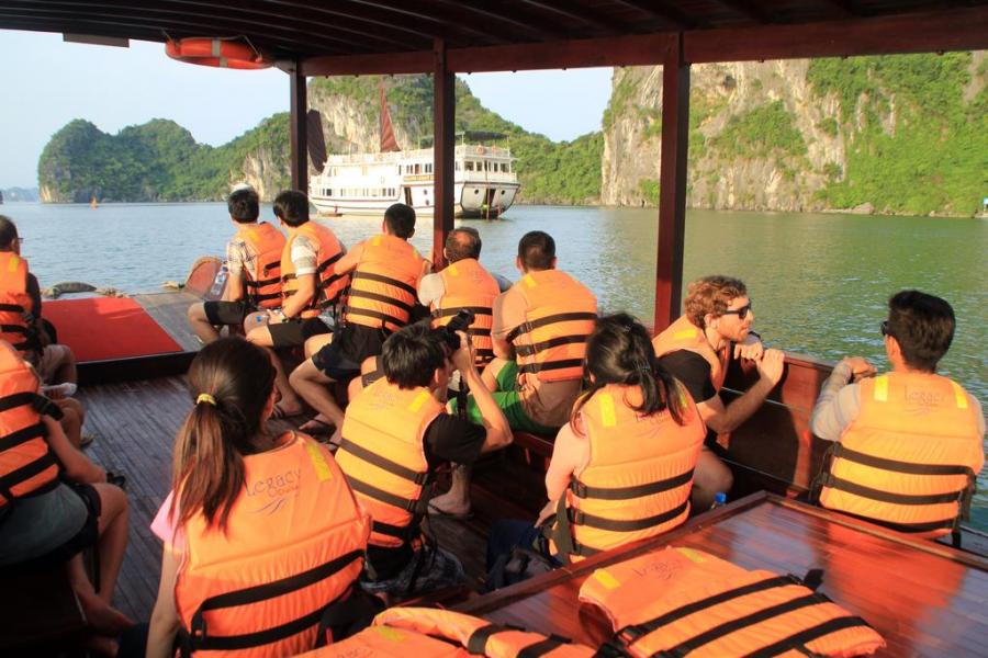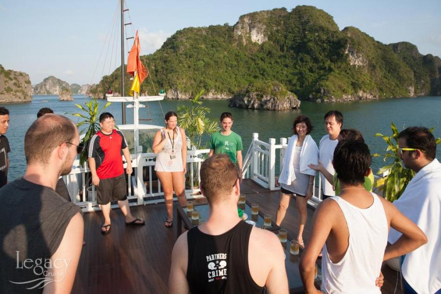 12h30: Arrive at Halong habour, transfer to the Legacy Legend Cruise by tender, enjoy welcome drinks & check-in your cabin.