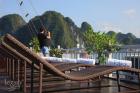 Start your day with Taichi exercises or a photo hunt. 07h00: Breakfast, coffee and tea and served while cruising ahead to Halong Bay.