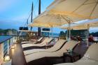 Deluxe dinner is served. Enjoy delicious local food prepared and served for you by our wonderful onboard catering staff. This is a delightful meal in an intimate romantic setting