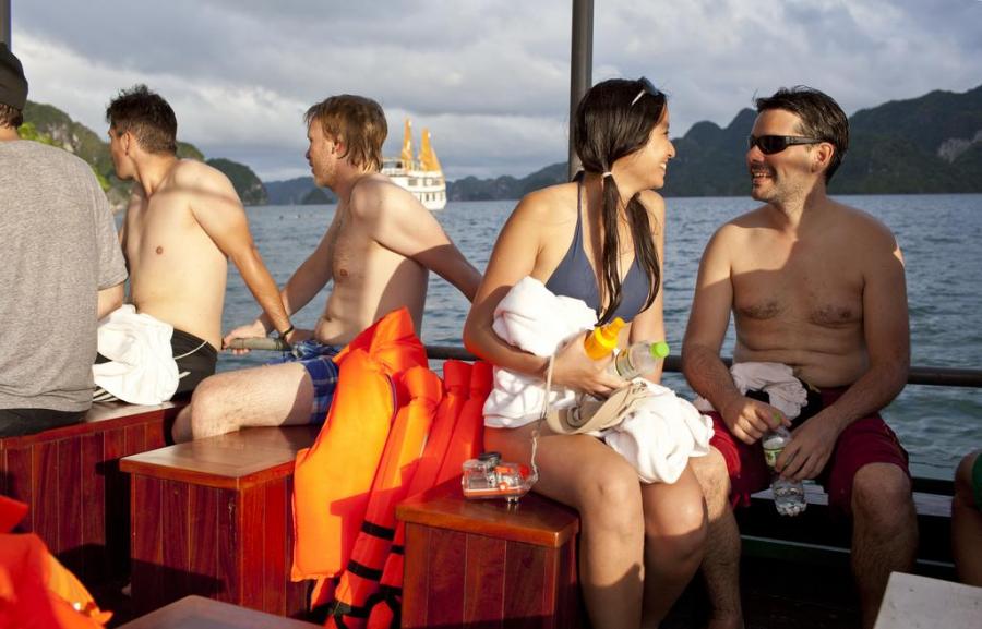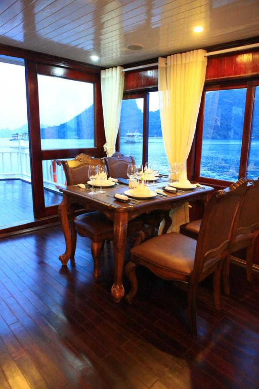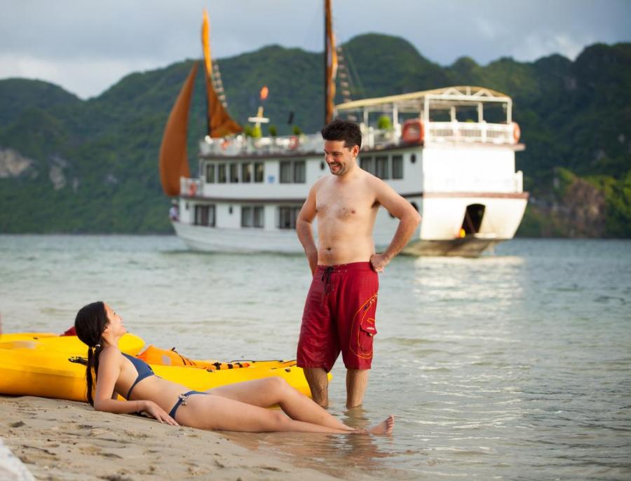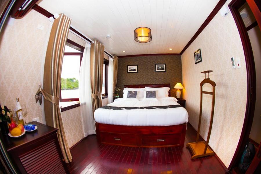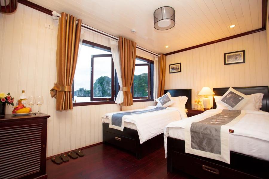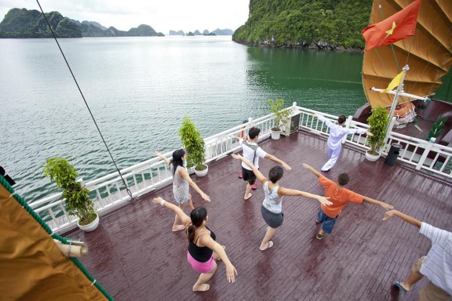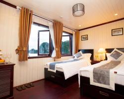 Launched Halong Phoenix Cruiser 03 (November 2011) with 14 cabins is designed with sophistication and meticulous attention to detail has been made for your enjoyment. Our 40 meter wooden junk cabins withfull service of restaurant, sun deck with comfortable lounge chairs and an attentive staff to cater to your every need. Along with the great facilities we have special activities: exploring the caves and beaches, kayaking, cooking class, ect... The cruiser is the perfect choice for a family, couples or small groups.