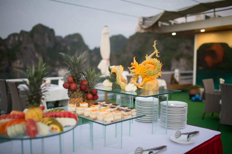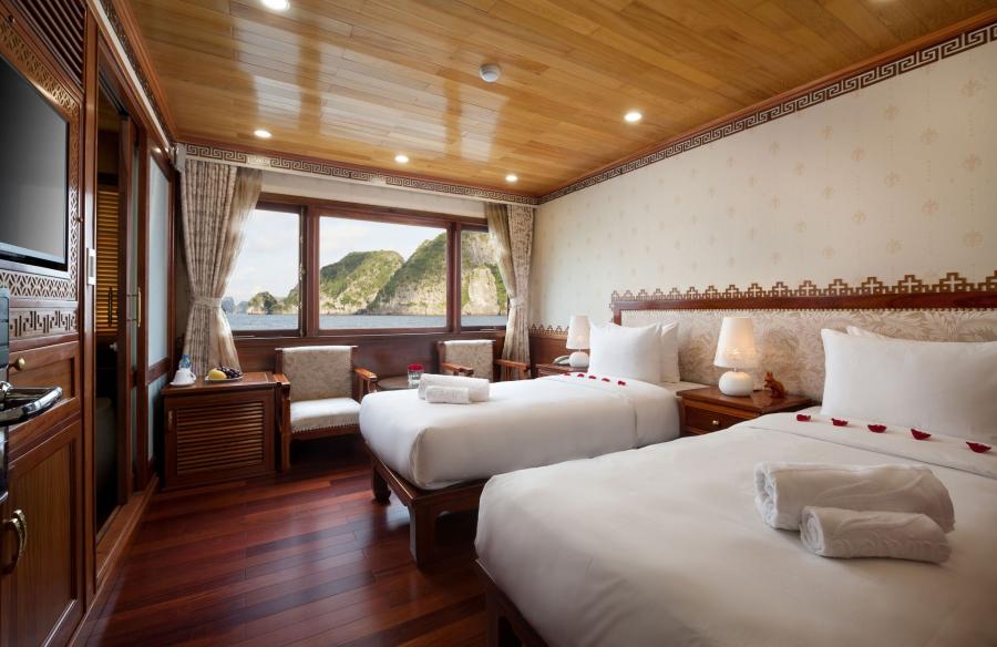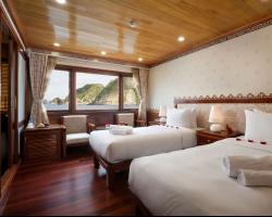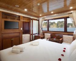 The Royal Wings Cruise - a vessel combining traditional oriental value and completely different styles of luxury is the best choice to serve the upcoming travelers with the expectation of high-end facilities, professional services in Halong Bay, Vietnam. The Royal Wings Cruise will bring you the most comfortable by charming of luxury facilities. With a spacious area of more than 500 m2 and 20 luxury cabin, 01 restaurant, 02 bars, the Royal Wings Cruise purposes is to give the passengers the best relaxing and enjoy all the interesting time onboard.