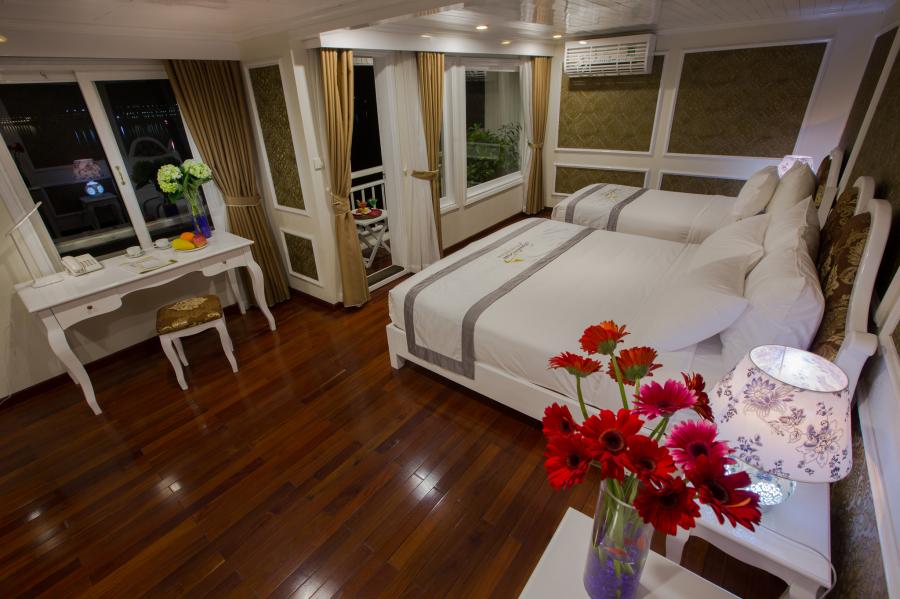 20:45 – 00:00: Evenings are beautiful on Halong Bay, and just because the sun goes down doesn’t mean the night is over. Take advantage of our onboard facilities or just relax to your heart’s content. Relax at our fully stocked bar with an assortment of local and international favorites. Try your luck at night squid fishing, watch a documentary film or simply relax on our roof top deck.